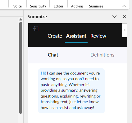 To use the AI Assistant on Word, you need to first download the Summize Word Add-in, if you haven't already.