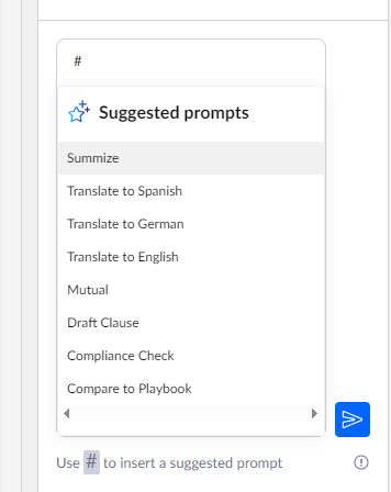 Simply type # into the chat, and a list of available prompts will appear. Each of these prompt titles has a more complex prompt in the Summize back-end.