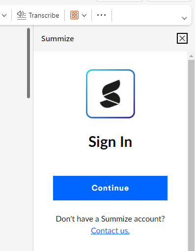 In the Word for the Web tab, sign into the Summize add-in (skip this step if you're already signed in!):