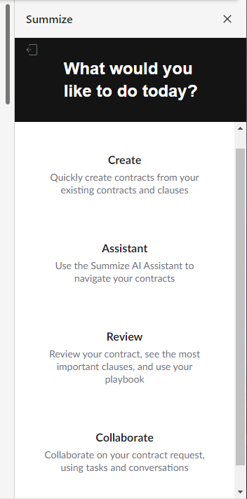 We've brought the Tasks and Conversations collaboration tools that you're familiar with in the Summize web app into Word for the Web. To collaborate within Word for the web, navigate to the Request, click 'Edit version', and click 'Check out in Word for the web':