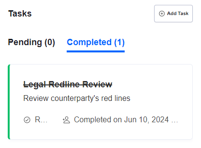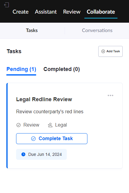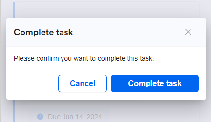 You can complete tasks whilst reviewing your document by clicking 'Complete Task' and confirming: