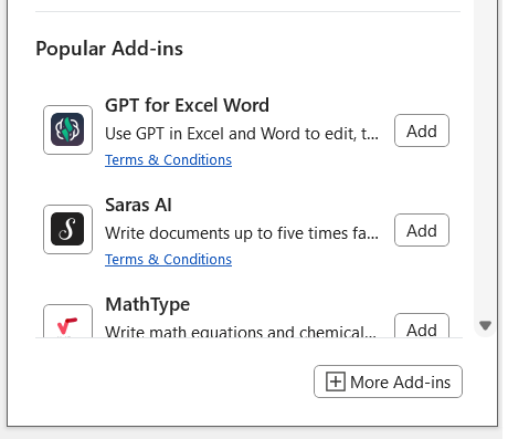 - Click the Add-ins icon and click on 'More Add-ins':