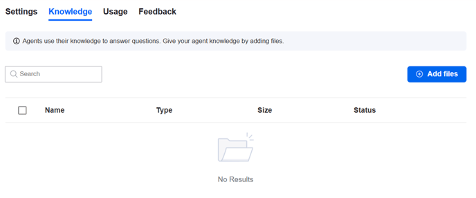 Once your settings are configured, navigate to the Knowledge tab to start uploading your files.