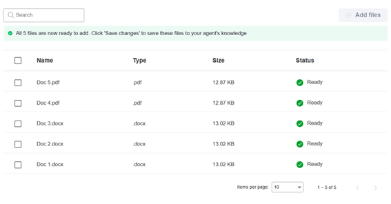 Click ‘Save agent’. You can continue to add more documents, or begin testing your agent.