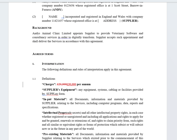 - The downloaded contract will automatically show you markups of the changes made in the different versions of the contract.