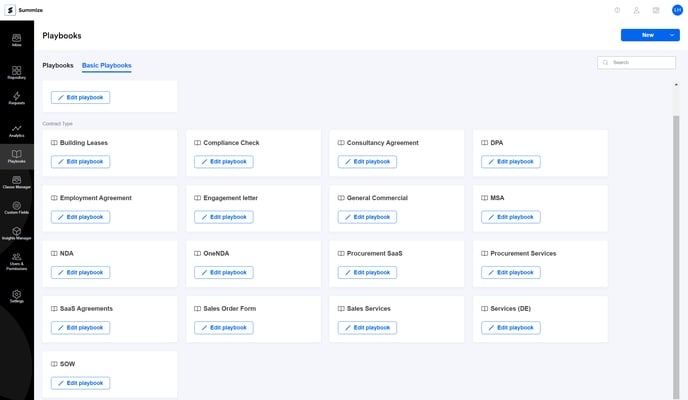 There is no limit to the amount of Playbooks you can create, or the amount of content you can add to a single Playbook. Therefore, some customers choose to either have one master Playbook that can be used against any contract type, multiple Playbooks that are organised into high level themes (e.g. 'Commercial Contracts', 'Supplier Contracts', etc) or multiple playbooks that are organised into specific contract types (e.g. MSA Playbook, NDA Playbook, DPA Playbook, etc).