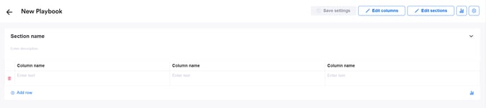 Once created, the Playbook by default has one section and three columns:
