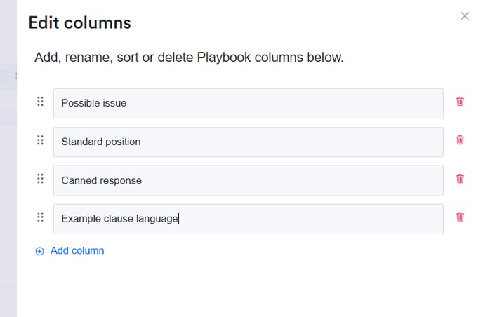 From the slide panel, you can add, rename, sort or delete Playbook columns: