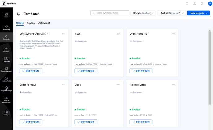 Once you have copied the field you'd like to map, open a new tab in your browser and navigate to the Summize web app. Go to Requests > Templates, and select the template that you'd like to add field mapping to:
