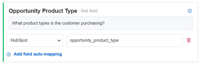 Find the question in the template you'd like to add mapping to, and click 'Add field auto-mapping':