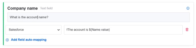 Select Salesforce from the dropdown, and then paste the name of the field that you have copied from Salesforce: