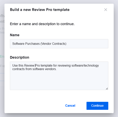 Each Review Pro template should be for a specific contracting scenario, for example: