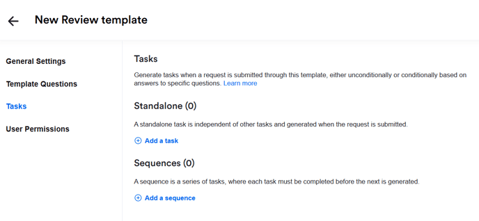 Task sequences allow you to configure a structured, step-by-step approval process. Upon submission of a Review request, the first task in the sequence is generated. Following this, each subsequent task in the sequence will be generated only after the previous task has been completed.