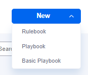 To create a new Rulebook, navigate to Playbooks in the web app, and in the top left corner, click New > Rulebook: