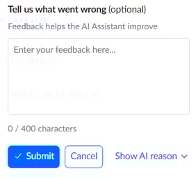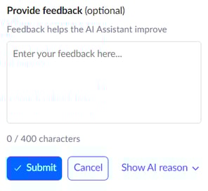 After you have made your selection, you will be presented with a text box to offer a short explanation as to why. This is optional, but will add more context to the prompt to help AI repeat/prevent this behaviour for the next review: