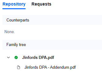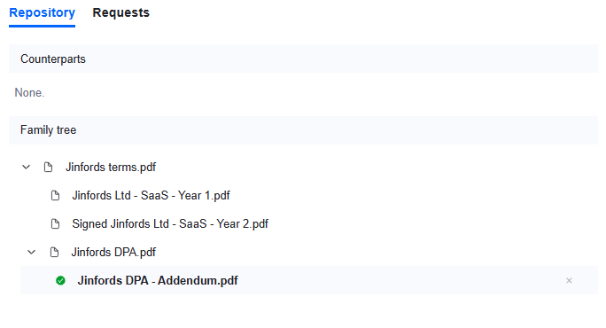 Note, if you have configured Repository folder visibility restrictions in Users & Permissions, a user with restricted visibility will be able to see the full family tree above (i.e. all the document names), but if they click on a restricted contract, they will not be able to access it.