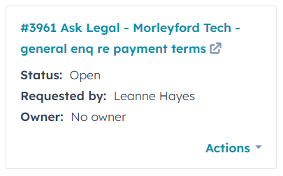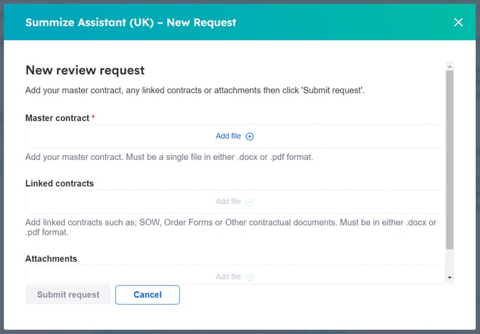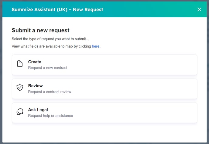 With the Summize embeddable Legal Front Door in HubSpot, you can seamlessly submit and update Create, Review and Ask Legal requests directly in your existing HubSpot account, without having to switch applications.