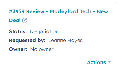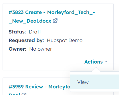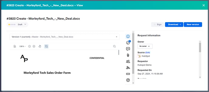 - Commercial users can see all information associated with the requested contract directly within HubSpot, including pending and completed tasks, conversations, summaries and more.