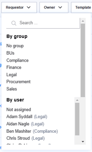 Requestor: You can filter requests by the user group or individual user that submitted them.