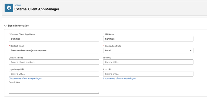 To allow Summize to access the Salesforce APIs and security protocols, we need to create an External Client App in Salesforce.