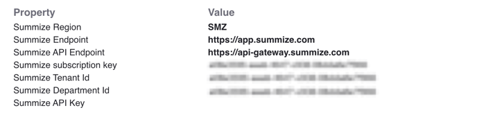 - Tenant ID: Summize Tenant Id