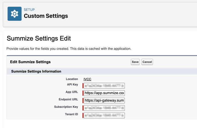 9) Point Salesforce to your Summize account (Custom Settings)