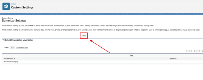 - Click the 'New' button at the top of the screen (shown below) to create a Default Organization Level Value.