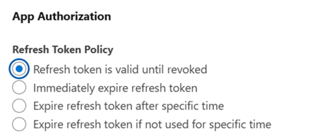 Scroll down to ‘App Authorization’ and select ‘Refresh token is valid until revoked’: