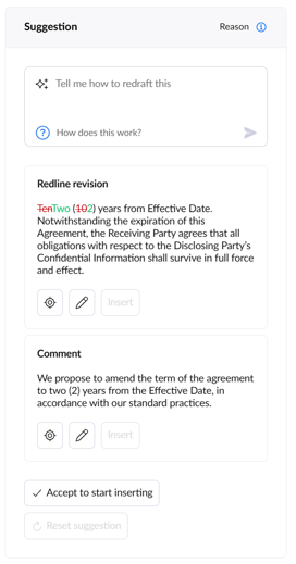 - Rephrase, translate, shorten and query sections of your contract.