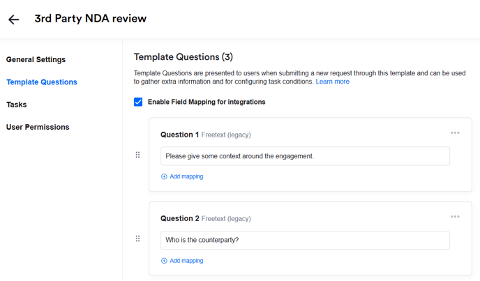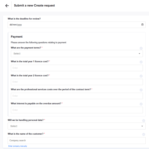 You asked, and we listened! Legal users can now include various question types like drop-downs and date pickers in Review and Ask Legal templates, as opposed to just free text questions. Allow your business users to self-serve with confidence, and get the information you need to process the request efficiently.