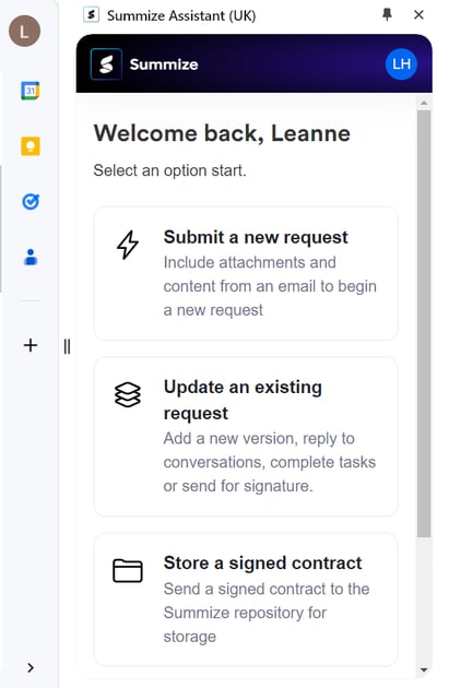 We now have a new tier of licence, which gives users more restricted access to Summize features. 'Requestor' users can submit Create, Review or Ask Legal requests through the web app or through any of our legal front door integrations. Post submission, they have limited access to features (for example, they cannot create tasks and cannot collaborate on any Requests they did not submit) and they do not have access to the Repository. This is ideal for infrequent users who may need to submit requests to the Legal team and track them to completion, but don't need access to additional Summize features. Get in touch with your Summize contact if you'd like to find out more!