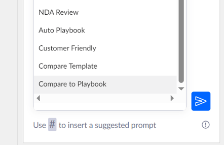 A new default prompt has been added to the AI Assistant in Word to allow paragraphs, sections or even whole documents to be compared to all areas / specific areas of a Playbook. Use this feature to help speed up your review process by comparing clauses to your standard positions and receive suggest redlines, all without leaving Word.